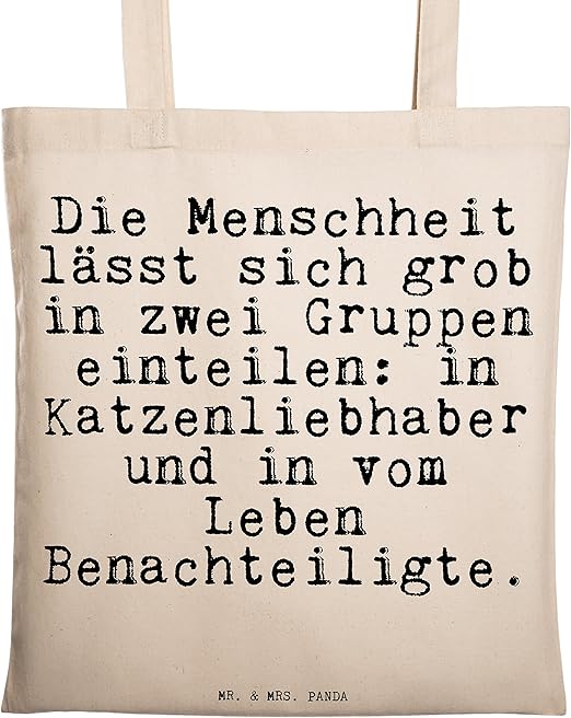 Mr Mrs Panda Tragetasche Mit Spruch Die Menschheit Lasst Sich Grob In Zwei Gruppen Einteilen In Katzenliebhaber Und Amazon De Kuche Haushalt