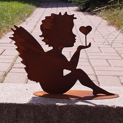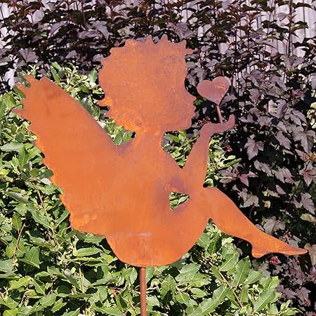Dekostuberl Edelrost Engel Bea Mit Herz Auf Stab 100cm Gartendekoration Inkl Herzle 8x6cm Amazon De Garten