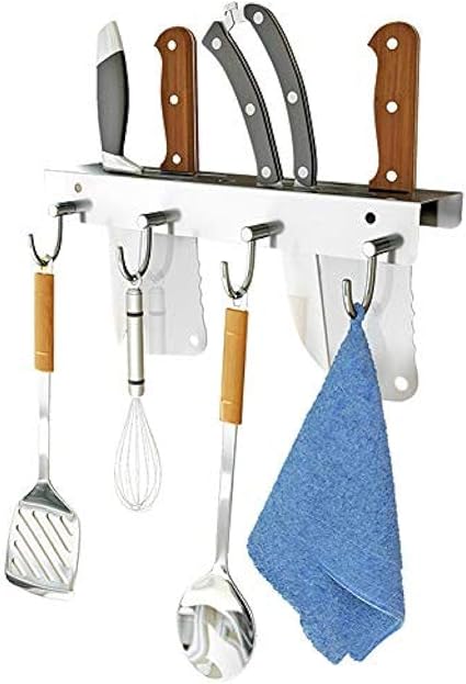 Messerstander For Kuche Kuchenutensilien Halter Multi Wand Befestigten 4 Schiebehaken 32cm Aus Hochwertigem Edelstahl Stilvoll Und Platzsparende Silber Amazon De Kuche Haushalt