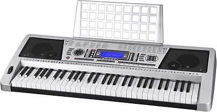 Amazon Com Aw 61 Key Electric Keyboard Organ Lcd Screen Midi Silver Sheet Music Stand Digital 37x14x5 Personal Electronic Piano W Manual Gift Musical Instruments