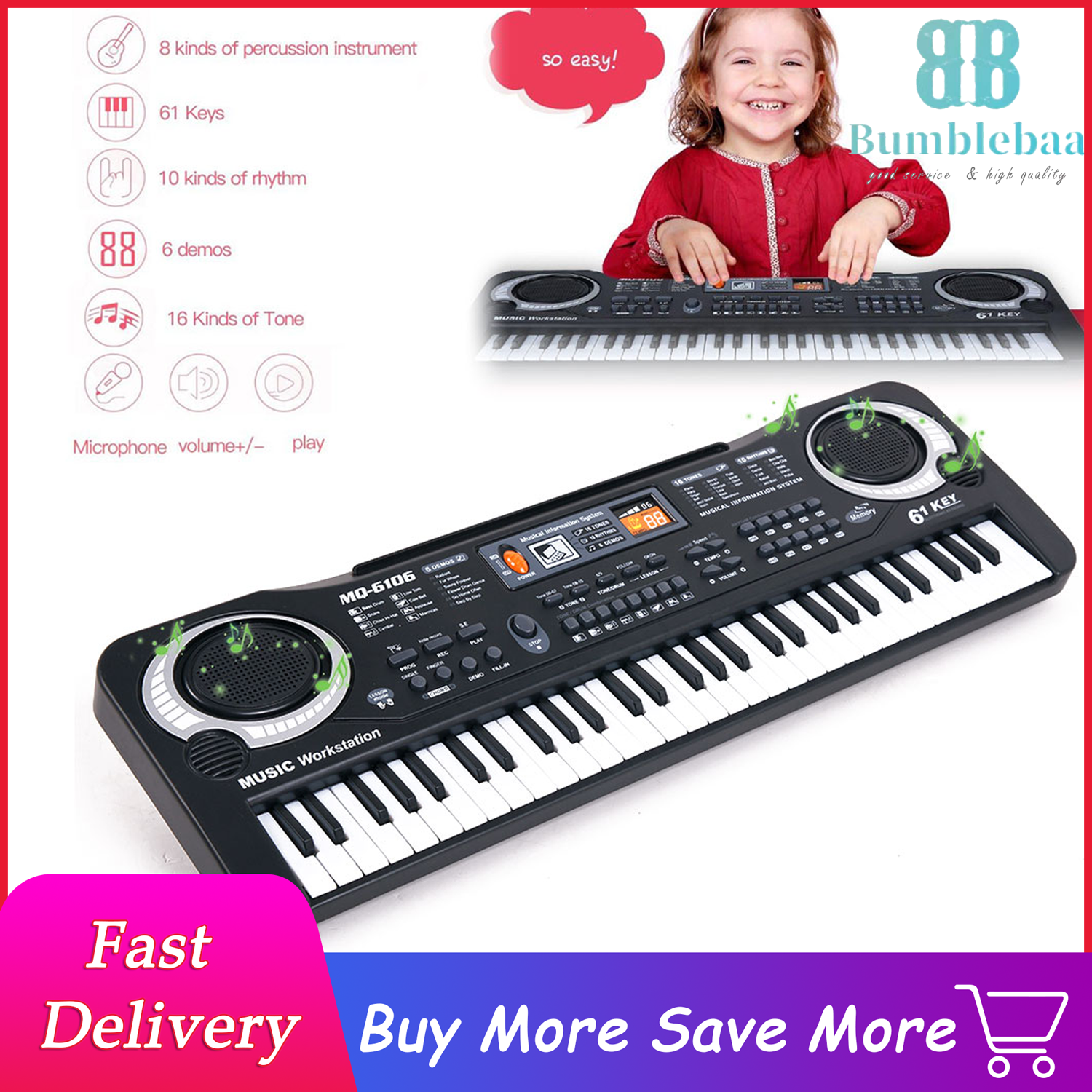 Bumblebaa Electronic Organ Music Piano 61 Keys Keyboard Usb Portable With Microphone Piano Toys For Kids Children S Instrumental Music Teaching Lazada Ph