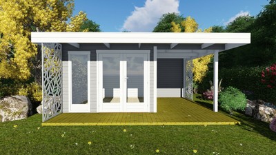 Flachdach Gartenhaus Modern 3x3m 40mm Blockhaus Holz Mit Anbau Berlin Ebotl Ebay