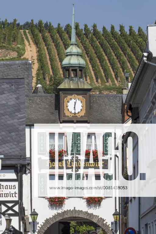 Rudesheim Am Rhein Weinbaustadt In Deutschland Hotel Lindenwirt In Der Altstadt Und Blick Auf Weinberge Stockfotografie Alamy
