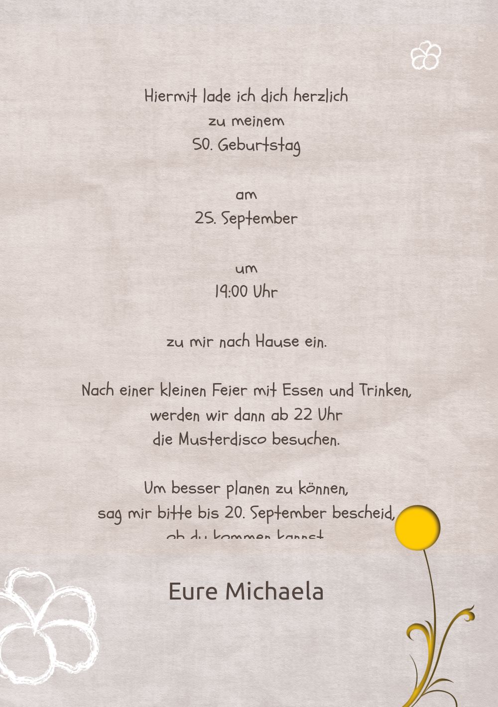 Geburtstag Text Unique Komplimente Geburtstagskarte Zum 50 Geburtstag Happy can be beneficial inspiration for those who seek an image according specific categories, you can find it in this site Finally all pictures we have been displayed in this site will inspire you all Thank you for visiting. Eine Parkscheibe zum 30 oder eine polizeiliche Vorladung zum 60 – alles ist möglich und nur Ihr persönlicher Geschmack entscheidet Dazu können Sie weiße Umschläge bestellen, damit Sie Ihre Einladungskarten zum 50 Geburtstag direkt den Empfängern zukommen lassen können. Grußkarten, Glückwunschkarten, Einladungen und Dankschreiben für alle Anlässe, Tipps zum selber drucken und gestalten.