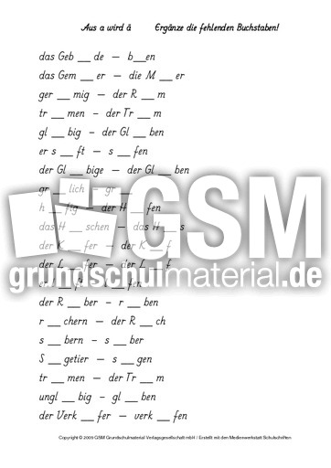 Aus A Wird A In Der Grundschule Arbeitsblatter Rechtschreibung Deutsch Klasse 3 Grundschulmaterial De
