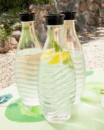 Die Firma SodaStream bietet spezielle Reinigungstabs für ihre Flaschen an Diese reinigen ähnlich wie Geschirrspültabs oder Gebissreiniger Die Sodastream Reingungstabs Anwendung ist einfach Sodastream Reinigungstabs Anwendung Die Anwendung ist die selbe für SodaStream PET und Glasflaschen. Die Glasflaschen von Sodastream sind mir jedoch lieber als die Plastikflaschen schade, dass sie nicht in das Modell passen, welches wir zuhause nutzen Wir waren sogar kurzzeitig am Überlegen, ob wir uns nicht das Gerät dazu holen, bei dem die Glasflaschen passen, haben uns aber aufgrund des Preises dagegen entschieden. Diese edlen SodaStream Glasflaschen sehen nicht nur schön aus, sondern garantiert frische und pure Qualität Ihrer Getränke Zudem verhelfen sie Ihnen im Handumdrehen wieder genügend kohlensäurehaltige Getränke im Haus zu haben Und das Beste Nach dem Gebrauch können die Karaffen in der Spülmaschine gereinigt werden Ihre Vorteile.