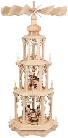 3stöckige elektrische Weihnachtspyramiden Naturbelassene, elektrische Pyramiden für die Advents und Weihnachtszeit mit 3 Etagen Sie haben unterschiedliche Themen, wie Christi Geburt, Wald, Engel oder Bergmänner Die Pyramiden besitzen ein klassisches, gotisches oder aufwendiges Design. Wie sehen die Amazon Bewertungen aus?. Im Standfuß der Weihnachtspyramide befinden sich feine Holzschnitte, die hinter Fenstern in Milchglasoptik indirekt beleuchtet werden;.