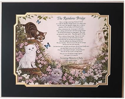 Names To Remember Gedenkgedicht Fur Haustiere Motiv Regenbogenbrucke Fur Verlust Ihrer Geliebten Katze Mit Doppelter Matte Waldgrun Mattiert Amazon De Kuche Haushalt