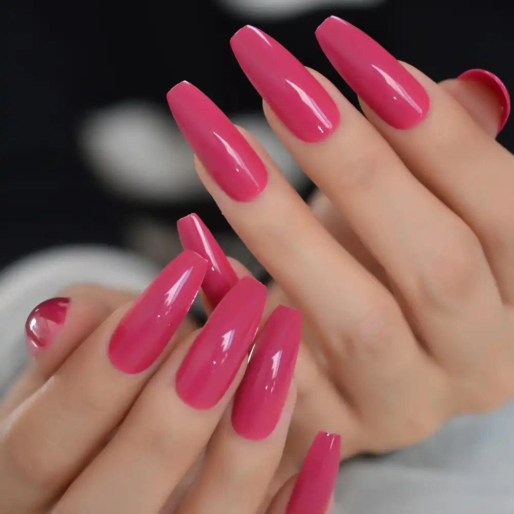 Pink Ballerina Coffin Full Cover Press On Nails Set Of Hot Pink Nails Ebay