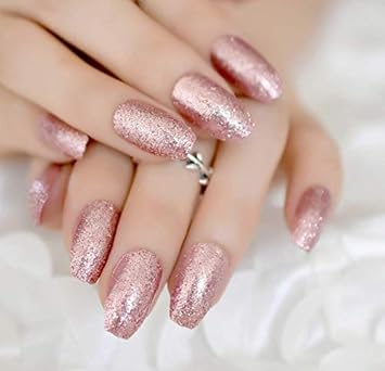 Fingernagel Shiny Rose Gold Gefalschte Sarg Ballerina Nail Tips Shining Sugar Glitter Deco Sommersalon Drucken Sie Auf Nail Art Tip Amazon De Beauty