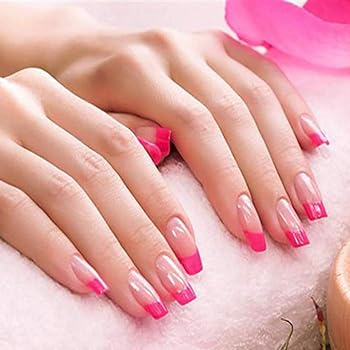 Brishow Kunstliche Fingernagel Sarg Lang Farbverlauf Ballerina Pink 24 Stuck Fur Frauen Und Madchen Amazon De Beauty