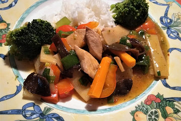 Chinesische Hahnchen Gemusepfanne Mit Reis Von Marisdiary Chefkoch