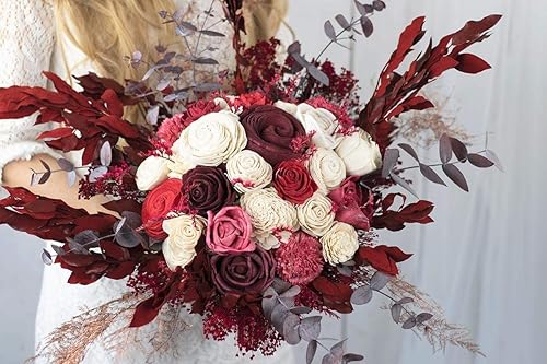 Blumenstrauss The Countess Roter Brautstrauss Sola Bouquet Holzblumen Haltbarer Eukalyptus Hochzeitsstrauss Verschiede Rottone Amazon De Handmade