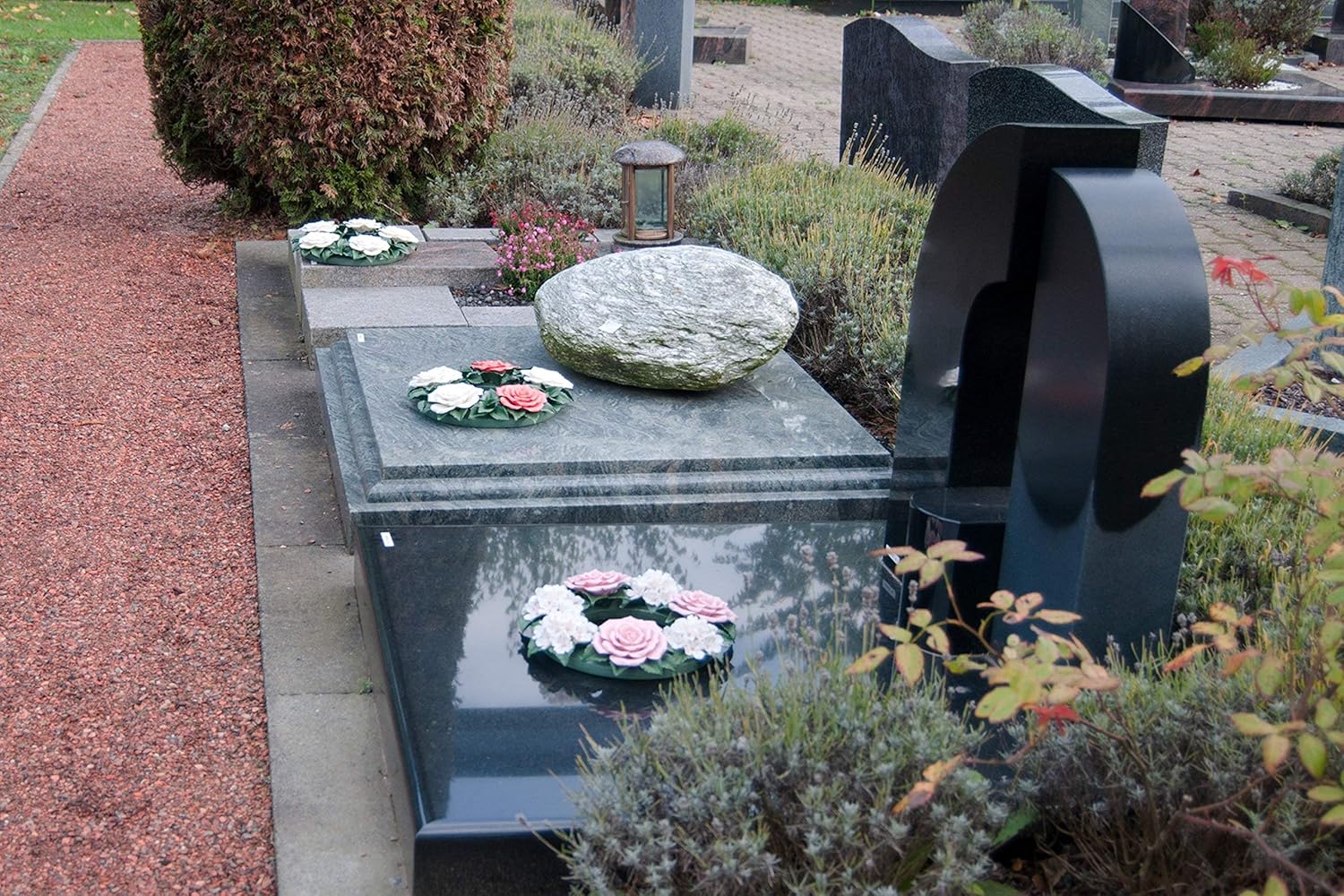 Grabschmuck Grabdekoration Friedhofsdekoration Hausdeko Trauerschmuck Wetterfest Trauerkranz Beerdigungsblumen Rot Weiss Gartendeko Blumenkranz Keramik Strausse Kranze Blumen Pflanzen