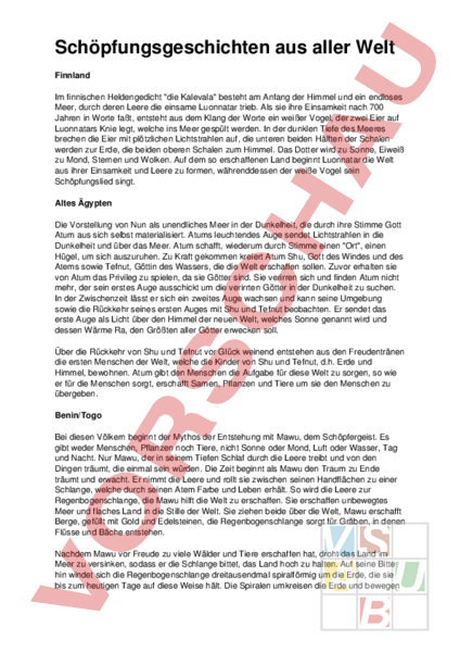 Arbeitsblatt Schopfungsgeschichte Aus Aller Welt Lebenskunde Religionslehre Bibel
