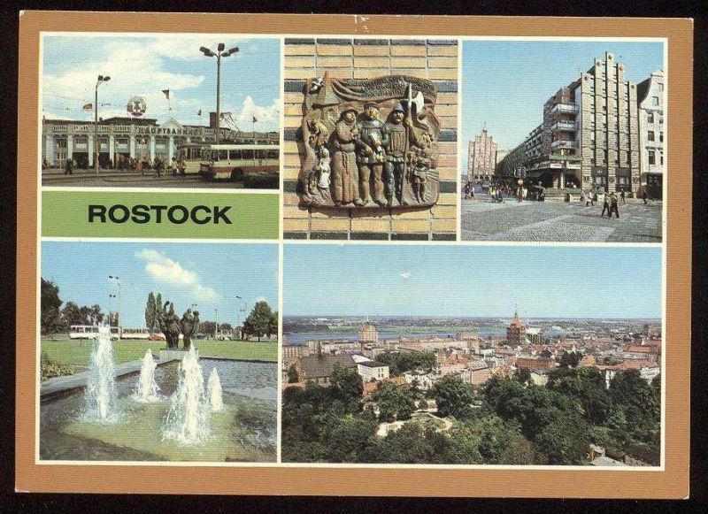 Postkarte Rostock Mit Hauptbahnhof Bahnhof Terrakotto Kropeliner Strasse Brunnen Hotel Warnow Station Gare Gdr Flag Ddr Nr Oldthing An