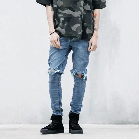 Kanye West Represent Mens European Clothing Slp Men Light Blue Black Designer Rock Star Destroyed Ripped Skinny Distressed Jeans Clothing Manufacture Clothing Tennisclothing Trousers Aliexpress