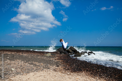 Premium Photo Young Couple Honeymoon On The Most Romantic Island Santorini Greece