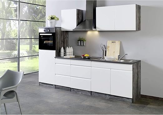 Kuchenzeilen Leerblock 270 Cliff Ohne E Gerate Grifflos Hochglanz Weiss Eiche Vintage Amazon De Kuche Haushalt