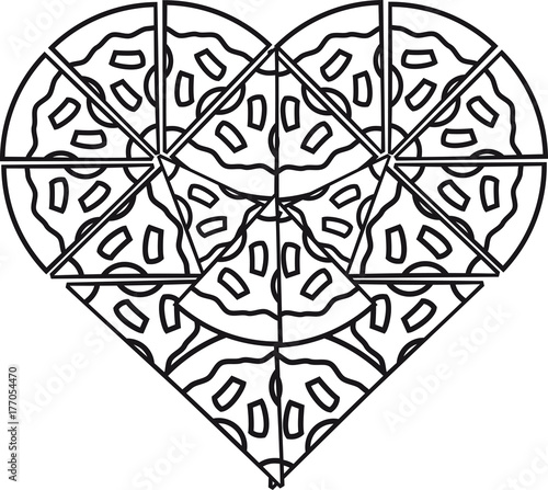 Geschmackvolle Pizza Die Ein Herz Oder Eine Liebe Mit Farbiger Gekritzelart Bildet Premium Vektor