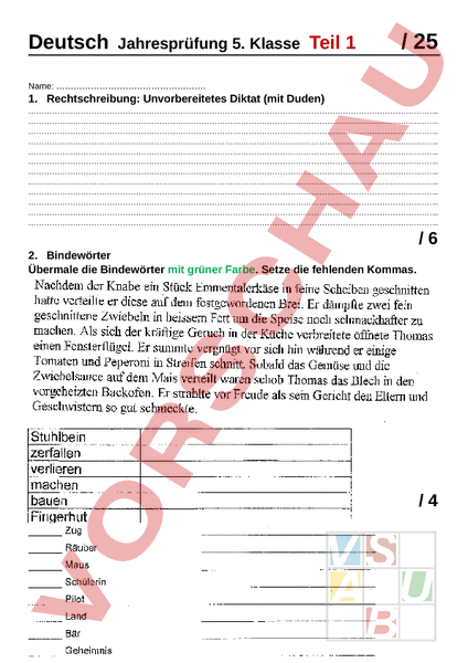Arbeitsblatt Jahresprufung Deutsch 5 Klasse Teil 1 Deutsch Gemischte Themen