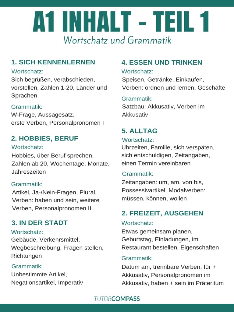 In 100 exciting animated episodes for levels A1 to B1, you can join Henry on a completely crazy adventure and learn about German and its language and people. Farben und Klassenraum A1;. The GoetheZertifikat A1 Start Deutsch 1 is a German exam for adultsIt certifies that candidates have acquired very basic language skills and corresponds to the first level (A1) on the sixlevel scale of competence laid down in the Common European Framework of Reference for Languages (CEFR).