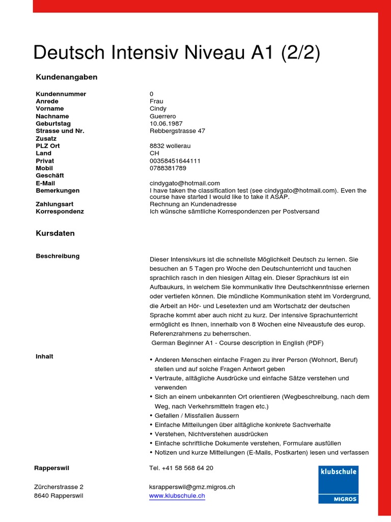 Deutsch Online Ubungen Niveau A1 Germancenter St
