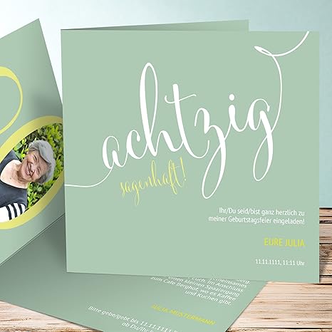 Erfrischend anders, die Einladungskarten zum Geburtstag von sendmoments!. Einladungskarten 80 Geburtstag Kostenlos Downloaden Da die Menschen sich langsam in Richtung des ultimativen Ziels Ihres Lebens bewegen, wegen der Schwierigkeiten, denen Sie in Ihrem Leben gegenüberstehen, machen Sie sie zunehmend unruhig und suchen gebrechlich und schwach Die älteren Menschen im Vergleich mit dem W. Ihre Einladungskarten zum 80 Geburtstag selbst gestalten Ohne Software im Kartenkonfigurator die Einladungen einfach online erstellen und drucken lassen.