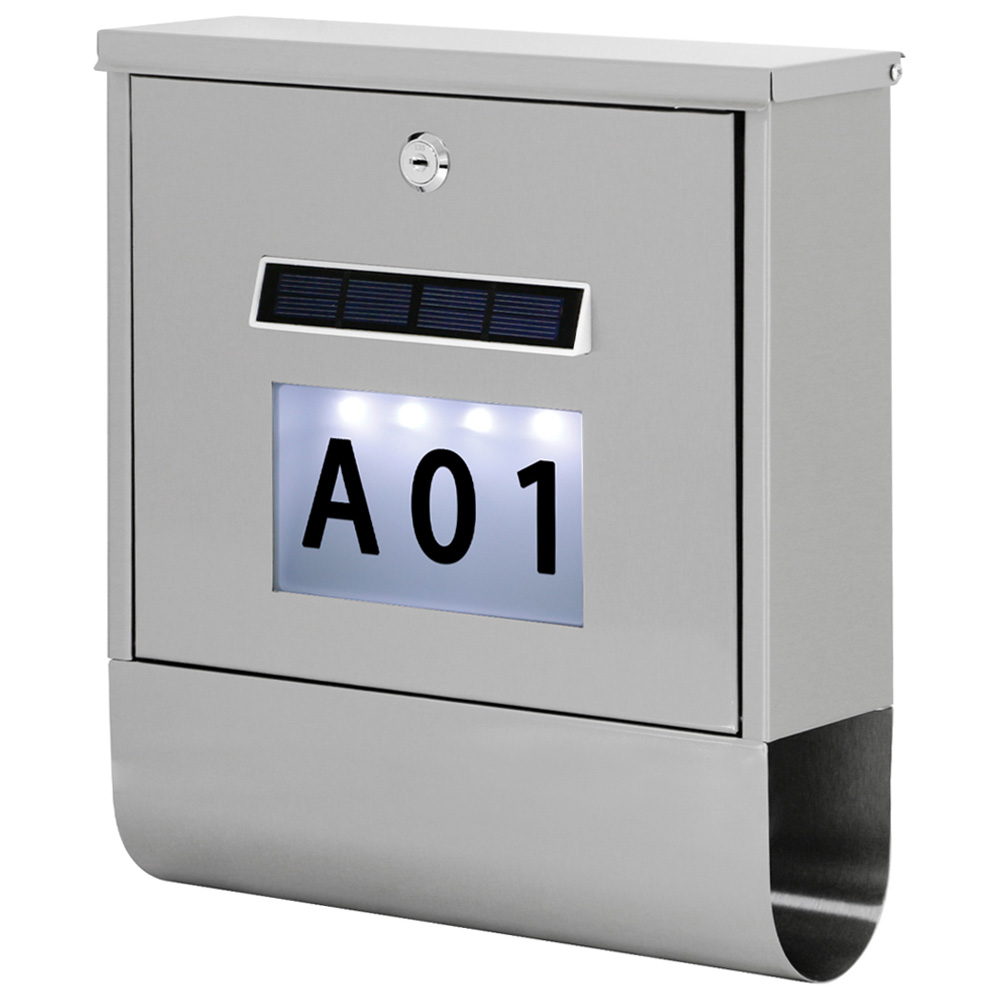 Solar Briefkasten Mit Led Licht Hausnummer Postkasten Edelstahl Wandbriefkasten Zeitungsfach Zeitungsrolle Auswahl V2aox Kaufen Bei Lagento Gmbh