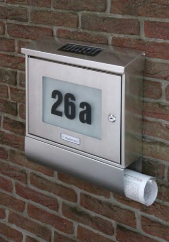 Zusätzlich beinhaltet dieser Briefkasten noch eine mit vier LEDs beleuchtete SolarHausnummer, so dass eine korrekte Zustellung der Post zu jeder eszeit gewährleistet ist Dank des Solarbetriebs ist keine Verkabelung notwendig Dieser Briefkasten ist ein absolutes Highlight und wird auch Ihren Eingangsbereich noch hochwertiger aussehen lassen.