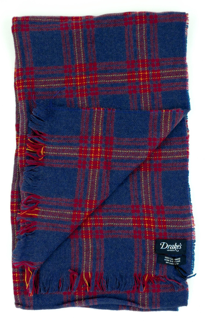 New Drake S London Men S Red Blue Tartan Plaid 100 Cashmere Scarf Machele Purnell