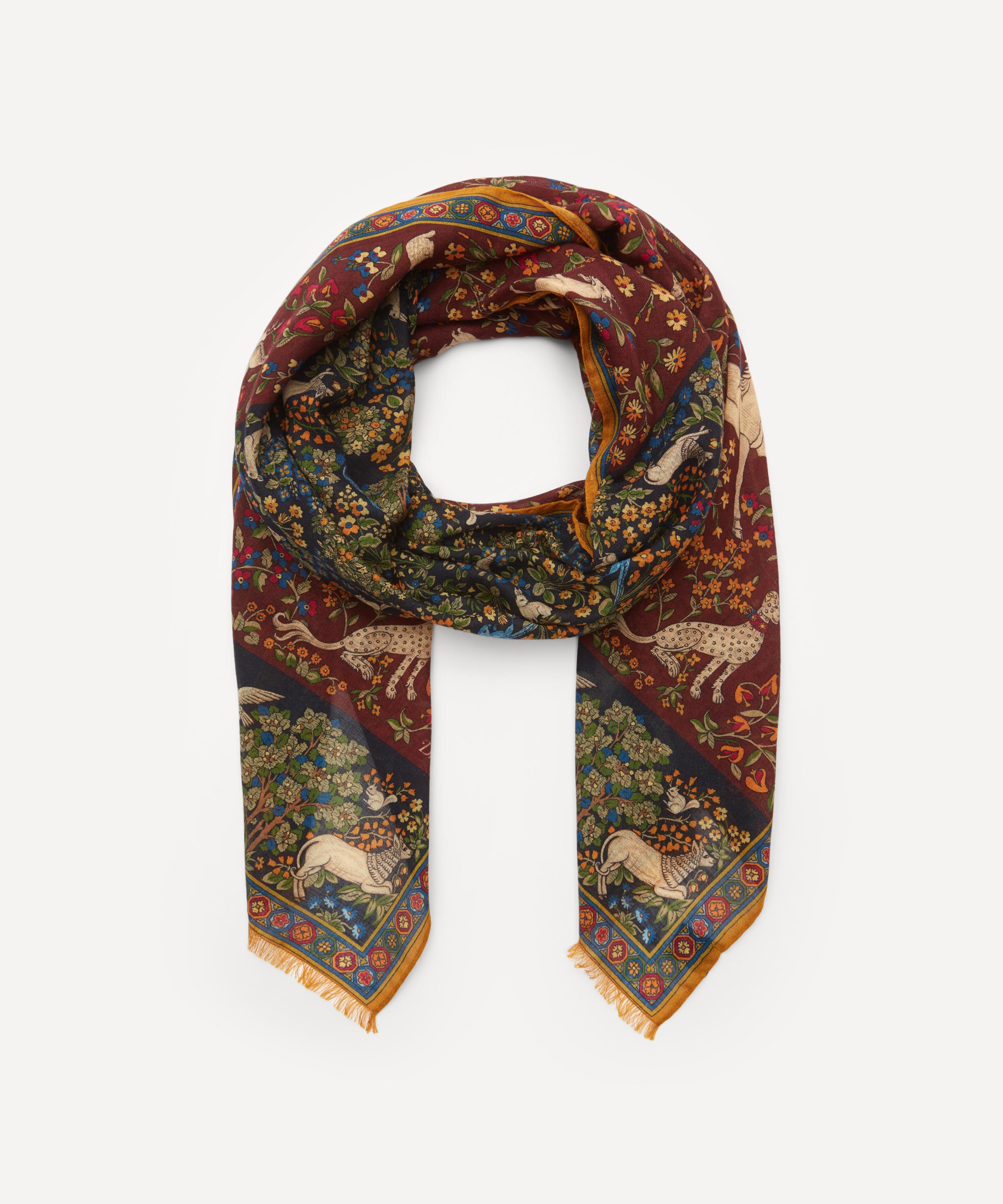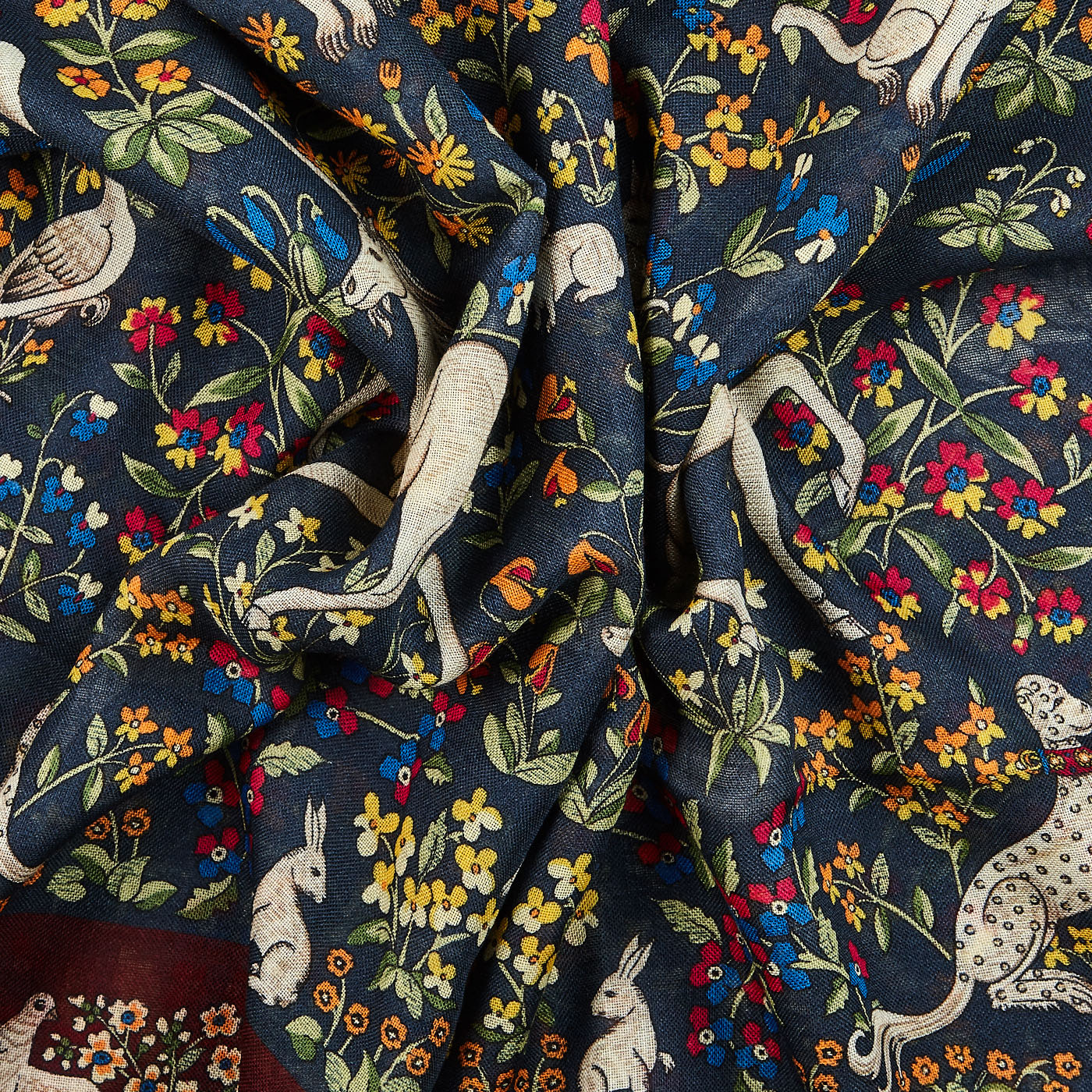 Drake S Blue Wine Mythical Forest Print Wool Silk Scarf Baltzar