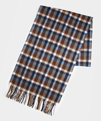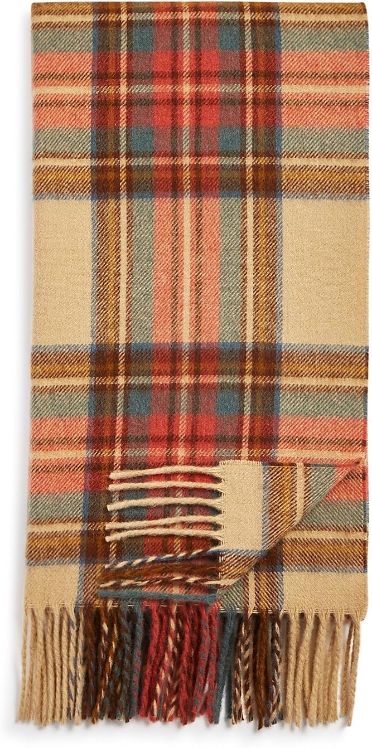 Drakes London Mens 18 X 70 In Merino Wool Plaid Scarf Natural Brown Blue Rust Fashion Scarves Accessories
