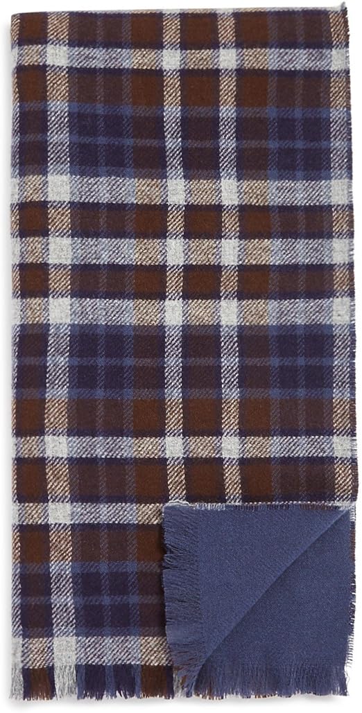 Drake S London Mens Merino Wool Double Sided Check Scarf Navy Blue Grey Brown 46x70 Amazon De Bekleidung