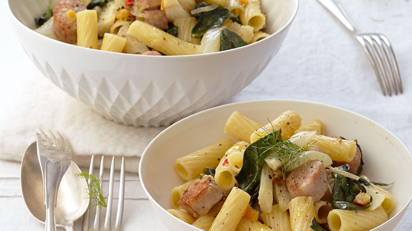 Tortiglioni Mit Salsiccia Und Mangold Rezept Essen Und Trinken