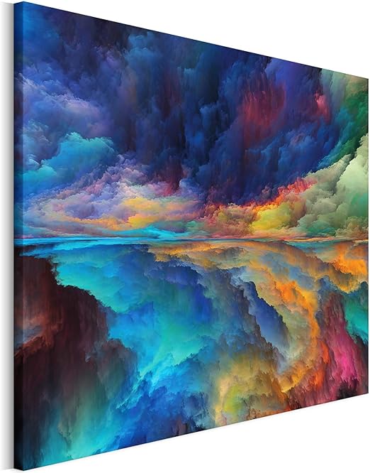 Revolio 40x30 Cm Leinwandbild Wandbilder Wohnzimmer Modern Kunstdruck Design Wanddekoration Deko Bild Auf Leinwand Bilder 1 Teilig Landschaft Abstraktion Malen Bunt Blau Amazon De Kuche Haushalt
