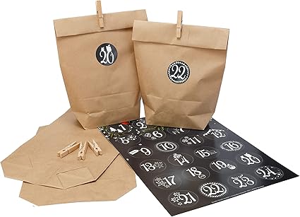 Amazon De Diy Adventskalender Set Zum Selbst Befullen Papiertuten Mit Zahlen Aufkleber 1 24 Und