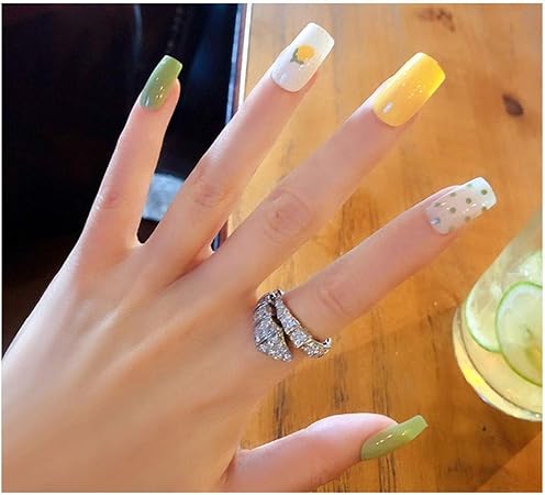 Jin Hua Fake Nails 24 Stucke In Einem Kasten Kunstliche Nagel Sommer Frisches Obst Grun Mit Perlen Dekoration Medium Rechteckige Kopfnagel Color C Amazon De Kuche Haushalt