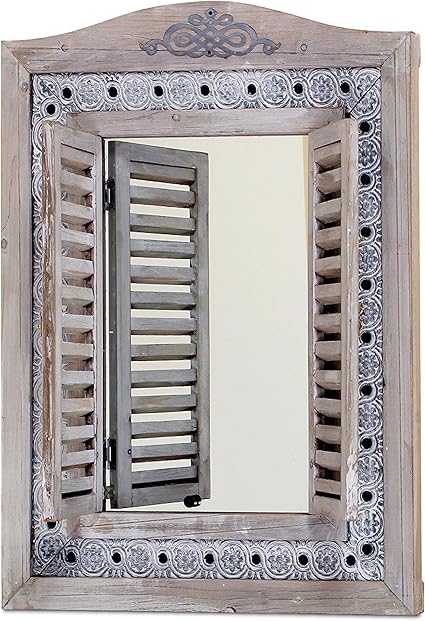 Amazon De Ganze Haus Welten Der Americana Rustikal Farmhouse Spiegel Mit Fensterladen Vintage Grau