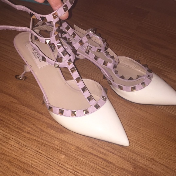 Valentino Shoes Rockstud Heels White And Tan Size 7 Poshmark