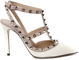Valentino Rockstud 100mm White Leather Slingback Pumps Vlt 023 186 00 Valentino Outlet Online Valentino Shoes Valentino Handbags Sale