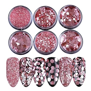Born Pretty Rose Rosa Nagel Glitzer Puder Sequins 1mm 2mm 3mm Paillette Manikure Nail Art Dekoration 6 Patterns Amazon De Beauty