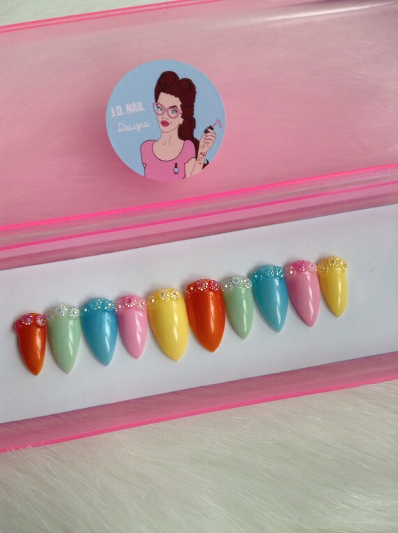 Pastell Regenbogen Nagel Drucken Sie Auf Nagel Falsche Etsy