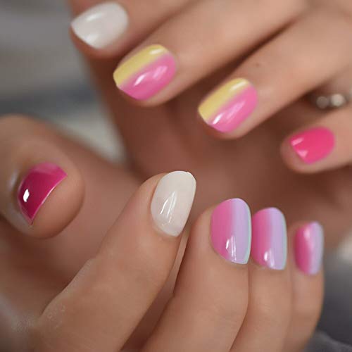 Echiq Bunte Regenbogen Kurznagel 24 Stuck Uv Gel Presse Kunstliche Fingernagel Fur Den lichen Gebrauch Im Buro Uv Nagel Amazon De Beauty