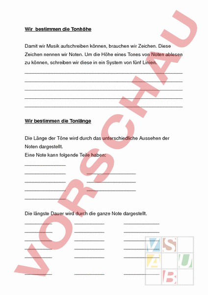 Musik Die Dauer der Noten – Unterrichtsmaterial im Fach Musik In diesem Material befinden sich 9 Arbeitsblätter zur Tonlänge bzw der Dauer der Noten, zum Aufbau von Noten und den Pausenzeichen Zwei Memo Spiele zum Erlernen der Noten und Pausen und ein FrageAntwortspiel mit 12 Kärtchen runden die Übungsaufgaben ab Merkblätter zu den. Musikerziehung Arbeitsblätter Details Kategorie Start Erstellt am Mittwoch, Juli 11 1527 Zugriffe Notenlehre 1 M Notenwerte Pausenwerte Lösung 5 Schulstufe Notenlehre 2 Unser Notensystem Lösung 5 Schulstufe M Der Violinschlüssel Lösung 5 Schulstufe Notenlehre 3 Noten ohne Vorzeichen Lösung 5 Schulstufe. Kostenlose Downloads und Arbeitsblätter zu den Unterrichtsmaterialien Das Musik1x1 Noten lernen, einfach wie Vokabeln ISBN.