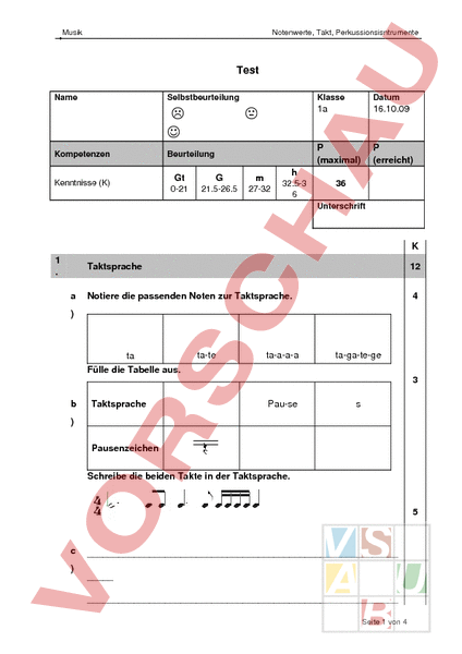 Arbeitsblatt Test Rhythmus Musik Rhythmus