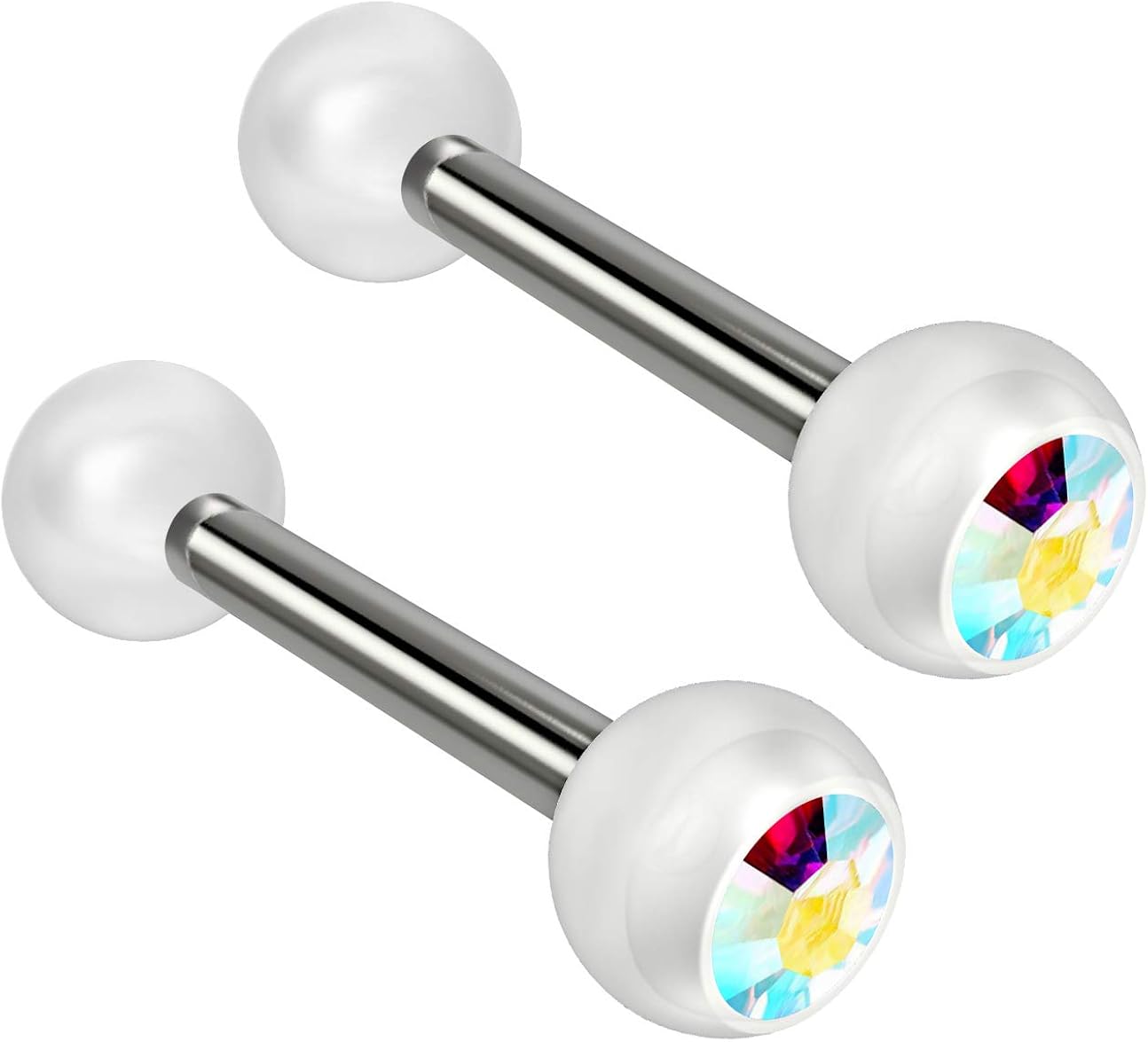 Amazon Com 2pc 16g Double Forward Helix Jewelry Barbell Earring Cartilage Tragus Surgical Steel Aurora Borealis Jewelry