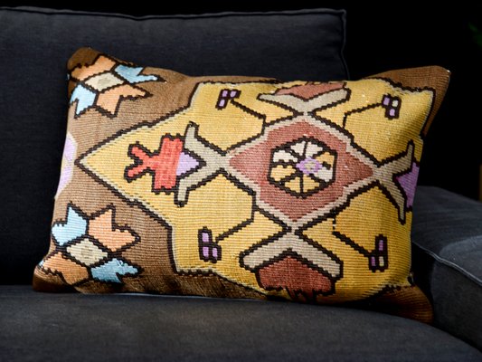Boho Lumbar Kelim Kissen Aus Wolle In Blau Gelb Braun Von Zencef 10 Bei Pamono Kaufen