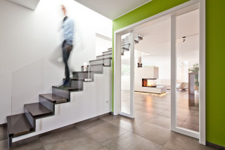 Moderne Treppe Mit Glaswand Fischerhaus Fertighauser Aus Bayern