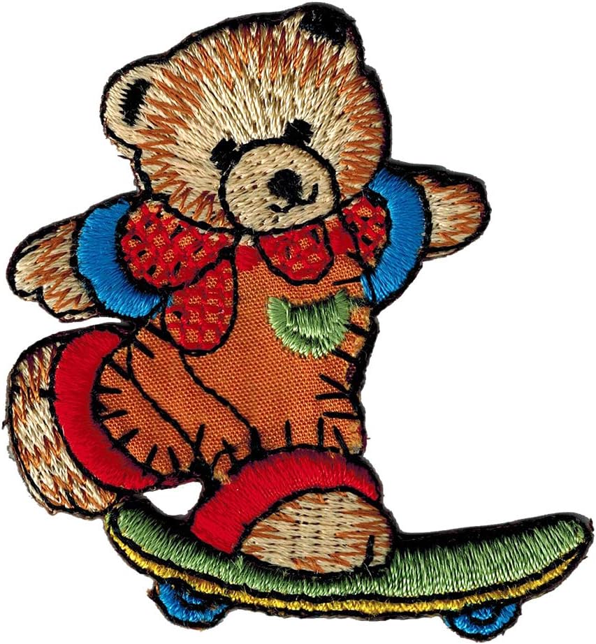 Amazon De Aufnaher Patches Bar Latzhose Teddy Mit Skatboard Br859 Gr Ca 5 5 X 6 Cm